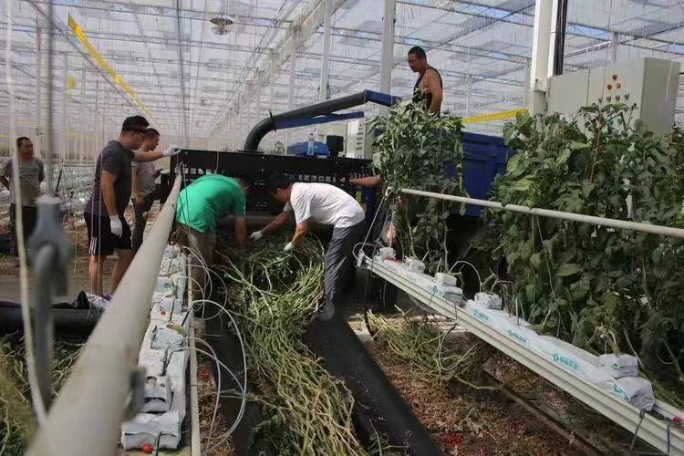 拉秧機的效率高,在智能玻璃溫室里,拉秧效率為2500-5000㎡/h。也就是說,一個兩萬平米的番茄種植溫室,兩三天就能拉秧完畢。